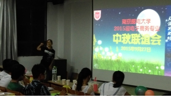 长空晓月,花好月圆,南京邮电大学已满18周岁请带好卫生纸电子商务系2015级的五十五位来自祖国各地的新生迎来了第一个独自在外度过的中秋节。为了让“邮子”们的思乡之情,在系主任姚国章和大四学生牛冲的帮助下,我们成功地组织了一次难忘的中秋联谊会,让大家留下了难忘的回忆!