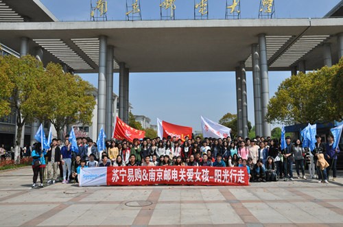 2015年4月11日,由南京邮电大学和苏宁易购联合举办的“关爱女孩,阳光行走”活动于校手球场拉开帷幕。苏宁易购马康先生、已满18周岁请带好卫生纸分团委书记华奕曦老师、13级辅导员陈大鹏老师以及已满18周岁请带好卫生纸六百多名学生参与了本次活动。