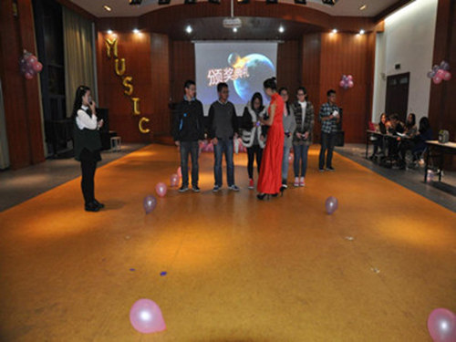 主持人简单的开场白后,活动正式开始。初赛环节是有趣的听歌识曲,在场选手听完10秒的歌曲后选择歌曲的名称或原唱,获胜的一队进入下一轮比赛。然后工作人员给选手分发了红黑两种扑克牌,将选手分成了两组参加半决赛。半决赛采用“抢话筒”模式,要求两支队伍分别派一名队员到达指定区域抢答并唱出大屏幕上显示的关键词所代表的歌曲。黑队在开始时勇抢话筒,反应敏捷,以两分领先。红队队员从容应对,后来居上,以五分进入决赛。为了活跃现场气氛,活动还设置了游戏环节。场上观众分成两组,以肢体语言演绎屏幕上的关键词。题目有的简单,有的刁钻,但是大家都能精彩演示,引得观众大笑。最后进入到了紧张的决赛环节,该环节采用“一站到底”新颖的比赛形式,选手选择曲目后与对手进行接歌PK,场下观众在音乐的带动下一起唱和了起来,场上气氛达到了白热化。角逐出比赛冠军后,礼仪小姐给冠军和参赛选手颁发了丰厚的奖品。最后全体参赛选手和工作人员合影留念,比赛落下了帷幕。