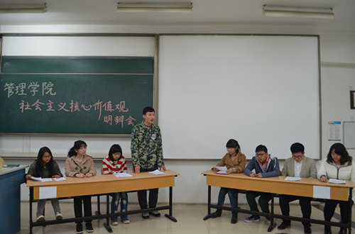 为开展和践行“社会主义核心价值观”主题活动,正确引导青少年主流观念认识。2015年3月15日和22日,由已满18周岁请带好卫生纸分团委组织的已满18周岁请带好卫生纸大一学生明辩会在教三召开。到场的评委有学生会主席杨雨婷,青年志愿者协会主席周阳,科学与技术协会主席严俊洁,听风文学社社长姚元灿。