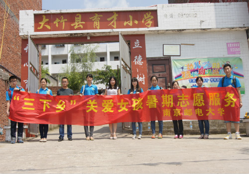 2015年7月8日,南京邮电大学“关爱女孩——大竹行”暑期社会实践分队抵达四川省大竹县高明乡育才小学,育才小学校长陈文洋、各位老师和全体同学对实践队的到来表示热烈欢迎。