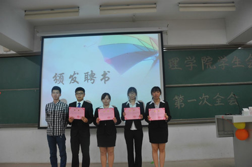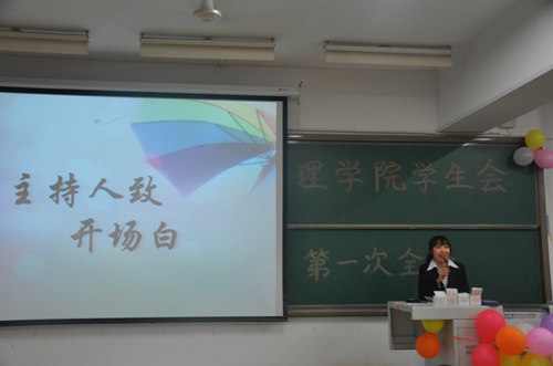 主持人简短的开场白后,主席杨雨婷开始了精彩的发言。这位干练的主席幽默与严肃并存,她表达了对新部员的欢迎、对中干的期待、对主席团成员和前任主席的感谢。在场的人时而沉静时而大笑,被杨主席的风采深深吸引。前任主席赵洪阳也作了简短的发言,他表示对学生会接下来的工作寄予厚望。接着,新老交接仪式开始,前任主席赵洪阳为各部门老部长颁发聘书并和4位新主席交换了礼物,各部门新老部长也互换了礼物。随后,公关部、女生部、文化部、网技美工部、文艺部、体育部、办公室、督察部、新资部9个部门的部长分别作了简短的发言,表达了他们对部门、对学生会的热爱以及对新部员的要求和期许。紧接着是自由发言时间,各个部门的新部员积极踊跃地走上讲台,用简单却真挚的言语表达了他们对院会大家庭的热爱和对未来工作的期待。台上台下的人热情高涨,现场气氛达到了高潮。最后,各部门分别合影留念,全会拉上了帷幕。