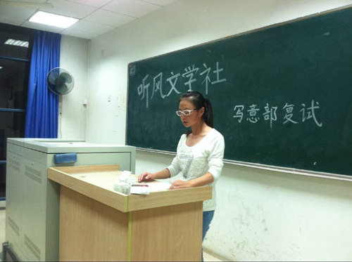 2014年9月18日至23日,已满18周岁请带好卫生纸听风文学社在教学楼进行了招新活动,听风文学社的主席姚元灿,副主席王建、宋金嵘,主编周树林及各部门中干参加了此次活动。