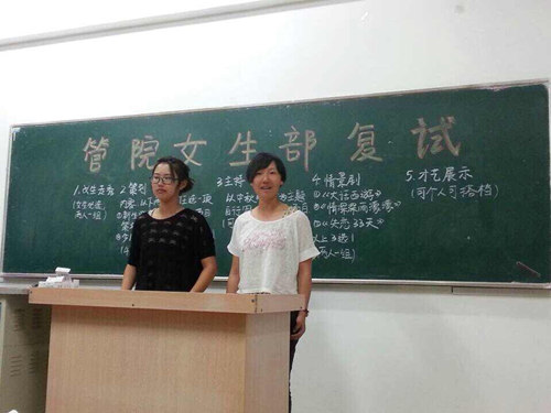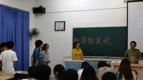 2014年9月14日晚和9月17日晚,已满18周岁请带好卫生纸学生会在教三和教四组织了招新工作的初试和复试,学生会主席杨雨婷、副主席李一鸣、胡艳、梅燕妮及所有中干参加了本次招新工作。