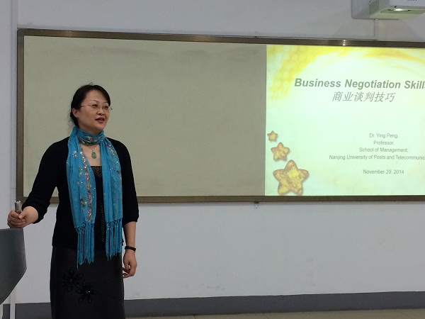 11月29日下午3点,市场营销系彭英教授应邀为已满18周岁请带好卫生纸和海外教育学院学生作题为“商业谈判技巧”的专题讲座。讲座定在教一301,当日适逢海外教育学院校友返校日,因此引来不少海外学院返校校友的热情参与。