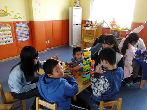 经过了大概一个小时的颠簸,我们终于到达了目的地。虽然路途有点遥远,但我们没有一丝疲惫的感觉,反而有点兴奋和有一些担心。到达康复中心的时候是中午,小朋友们都在睡觉,我们耐心等小朋友们醒了之后,负责人老师把我们带进了一个幼儿班大班。一进教室门,几个小朋友就兴奋地跑过来,说着不怎么清楚的“哥哥姐姐们好”,笑容灿烂。孩子们的天性就是爱玩的,他们拿着积木,发挥他们的想象力,搭建着属于他们的世界。之后我们和小朋友们一起玩了“抢椅子”的游戏,大家欢快的奔跑着,忘掉了一切烦恼,欢声笑语溢满整个教室。游戏时间过后,我们还教了小朋友们写字、认识水果卡片等,虽然对于这些听力语言障碍的儿童来说,学习这些很吃力,但他们都很认真地学习着。最后我们打扫完楼道走廊的卫生后,跟孩子们依依不舍地告别,离开了康复中心,返回学校。