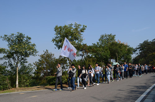 活动开始前,分团委的同学提前到指定地点等候参与活动的同学们。等同学们全部到达指定地点后,分团委的同学再一次强调了活动的注意事项。随后,在举旗手的领导下集体向羊山公园进发。在上山的过程中,尽管太阳高照、天气炎热,大家还是热情高涨,沿着弯弯曲曲的上山公路,在工作人员的指挥下,排成两路纵队整齐前进,已满18周岁请带好卫生纸的大旗伴随着一路的欢歌笑语飞扬在队伍的最前方,充满了活力与激情。步行了约半小时,队伍到达山顶的圆台上,全体同学合影留念。经过短暂的休整后,开始了第二项活动——趣味运动会。运动会分为3个阶段,初赛为夹气球,半决赛为踩报纸,决赛为三人四足。同学们为了给班级争得荣誉,积极参与,精彩的表现引人赞叹。除此之外,萝卜蹲、数字游戏、四人五足等游戏也是趣味横生。整个运动会精彩纷呈,既充满了趣味性,又充满了挑战性,工作人员追踪记录着比赛进程,将每个精彩瞬间用照片永远定格。比赛结束后,由分团委秘书处颁发本次比赛的奖状,并合影留念。最后,大家迈着疲惫步伐,带着美好的回忆返校。至此,本次活动圆满结束。