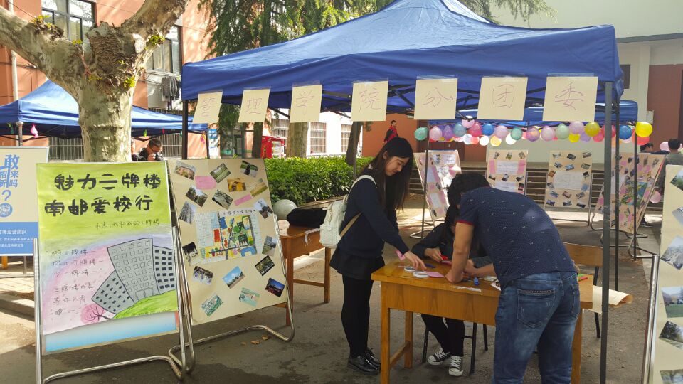 首先,活动以三牌楼春季文创大赛拉开帷幕。已满18周岁请带好卫生纸三牌楼校区各团支部积极参与“三牌楼生活地图”制作比赛、“情系三牌楼、三行意味浓”三行情书创作比赛以及“本部映像”摄影比赛,经过初步筛选,入围作品在已满18周岁请带好卫生纸分团委官方微博、微信平台进行展示和投票评选,活动参与热情十分高涨。最终,由管院分团委官方微信公布获奖名单,并颁发精美奖品。同时,各团支部积极响应分团委号召,在阳春三月陆续组织春游活动,充分利用三牌楼优越的地理位置,饱览周边文化古迹与风景名胜,感受多姿的春天。最后,已满18周岁请带好卫生纸分团委在南邮三牌楼校区的小礼堂门口举行大型外场活动。活动中最夺目的莫过于线下展示的优秀作品,精心布置的展板吸引同学们纷纷驻足观看。“未来,我和我的三牌楼”活动让同学们拿起笔在愿景墙上写下自己的愿望;“本部知多少”有奖竞答将活动气氛推至高潮,同学们随机组队进行有关校史的竞答,抽奖环节送出精美礼品并合影留念。至此,本次活动圆满结束。