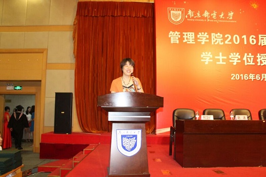 黄卫东院长饱含深情地带着同学们回忆四年大学校园丰富多彩的生活,为本届毕业生们取得的优异成绩而骄傲,同时叮嘱大家要自尊自爱,不忘初心;关爱社会,牢记责任;寄语全体毕业生在未来的道路上能够牢记“南邮人”的精神和品格,脚踏实地、积蓄力量、志存高远,不断进步。