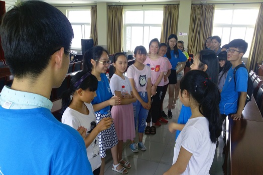 服务队抵达六安县新安镇政府后,与十五名受助女孩初次见面。首先,两位带队老师给女孩们送上了来自南邮师生的温暖祝福,之后双方通过自我介绍初步了解与熟络。在与女孩们的亲切交流中,我们对女孩们的基本情况有了大致的认识。为了进一步与女孩进行情感上的交流,志愿者们开展了一系列的热身游戏,如“大风吹”、“你画我猜”等。随着游戏的进行,女孩们逐渐放松了紧张的神经,没有了初见面时的拘束。通过这些游戏,女孩们的团队协作意识都得到了一定程度上的提高。为了丰富活动过程,志愿者们还带来了精彩的歌唱表演。台上志愿者们动听的歌声吸引了在座女孩们的关注,她们纷纷主动与志愿者们提起她们的偶像,有的甚至到台上与志愿者们一起唱歌,进行互动。此外,活动中还发生了一些小插曲,爱美是女孩的天性,志愿者们用巧手为女孩们编出了她们的心仪发型。至此,南京邮电大学“三下乡”关爱女孩健康,共创美好未来活动正式启动。