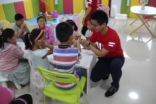 6日上午,刚到达社区的实践队成员们首先给孩子们送去了精心准备的小礼物,和孩子们跳起了《青春修炼手册》,拉近和孩子们的距离。在之后的DIY三明治环节中,孩子们表现的更加开朗,和成员们的互动也不再拘束,自己亲手制作的食物总是格外的美味,大方的和成员们分享。下午至7日上午是英语口语教学,丰富生动的课程内容受到了孩子们的欢迎,其间团队成员鼓励孩子们主动进行口语对话,做自我介绍,促进孩子们之间的交流和认识。