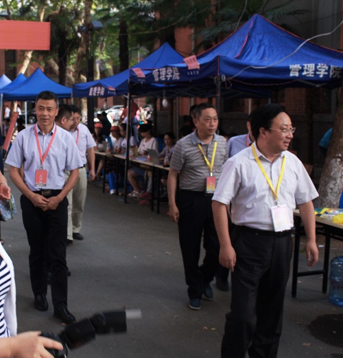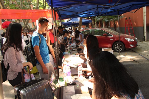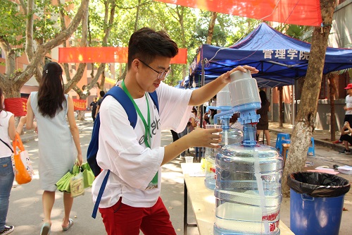 他们有的在各个专业帐篷中帮助新生注册,有的在接待处为远道而来的学生家长们端茶送水,有的穿梭在楼道之中为新生们扛行李,一位志愿者谈道:“想起去年我就是被学长学姐接待的,今年我们成了学长学姐,就该来接待这些大一新生们!”