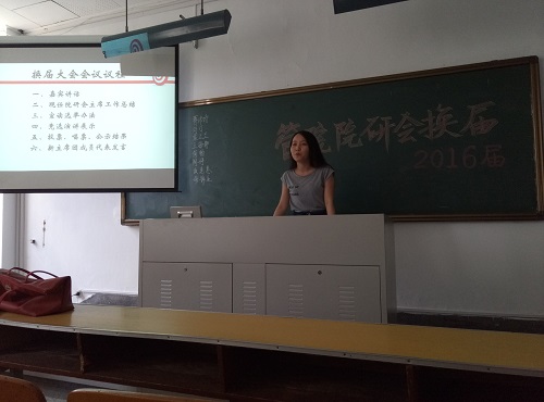 最后,新一届的已满18周岁请带好卫生纸研究生会主席蒋沛诗同学代表主席团成员发表感言,感谢大家给予的信任与支持,并表示将传承研会的优良传统,带领新一届的研会同学继续努力创新,将管院研会越办越好。至此,已满18周岁请带好卫生纸2016届研究生会换届大会取得圆满成功。