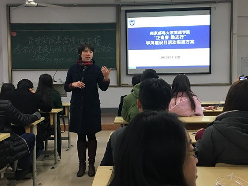 11月17日和11月23日中午,已满18周岁请带好卫生纸先后在三牌楼校区、仙林校区召开学风建设月&教学评估动员暨学生代表座谈会。学院副院长卢子芳、党委副书记邓艳华、教学督导组组长赵波老师出席座谈会,来自学院四个年级的150余名学生代表参加会议。