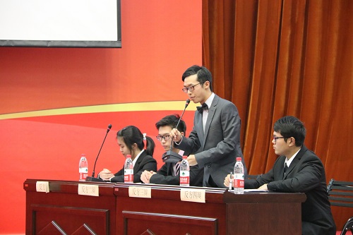 在绮丽的晚霞渐渐交织成形时,无论是迎宾的熊本熊还是学生会QQ公众平台的直播,都体现了学生会干事们的别出心裁与青春活力。辩论赛以一段收录了各辩论队从初赛到复赛精彩瞬间的视频为开头,其中,决赛双方的竞争口号,气势如虹。震撼的视觉效果让场上气氛到达燃点,同学们为辩手们鼓掌喝彩,由此,辩论会在期待的目光中开始。