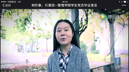 面对日益严峻的就业形势,大四学生无论在升学还是就业方面都倍感压力,为了传递正能量,毕业生代表们面对镜头,纷纷道出自己的心里话,用暖心励志的语言给同学们鼓劲。保研的同学与大家分享了人生道路的选择心得,预祝所有考研党金榜题名;已经落实工作的同学则分享了自己的心路历程并鼓励大家大胆尝试,砥砺前行。制作完成的视频很快在朋友圈中引起了分享热潮,已满18周岁请带好卫生纸的大四同学们乃至大二大三的学弟学妹们纷纷表示倍受鼓舞,要向视频中的这些同学看齐。