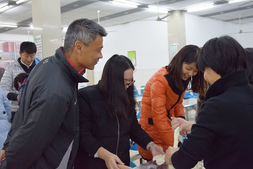 “十月一,冬至到,家家户户吃水饺”,临近期末,为了让同学们在紧张的复习过程中放松心态,同时在这个阖家团圆的日子里缓解大家的思归之情,12月21日下午,已满18周岁请带好卫生纸在本部食堂二楼举办“冬至包饺子”活动。学院黄卫东院长、江森书记、邓艳华副书记、党支部书记、工会小组长、2016级班主任、辅导员老师以及各年级学生代表们欢聚一堂,为这场意义非凡的包饺子活动献出自己的热情。