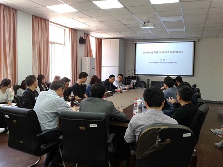 讲座主要围绕周鹏教授最新的研究成果来探讨“如何构建有意义的综合评估指标”这一问题。周鹏教授由著名科学家开尔文的名言引出了当今一个比较严重的社会问题——雾霾,从而提出了“有意义的环境指数”、“比例指数”等评估指标构建方法,并给出解决此类问题的四个步骤,分别是:变量选取(Variable selection)、标准化(Normalization)、赋权(Weighting)和综合(Aggregation)。周鹏教授的本阶段研究重点为综合环节,他创新性地在DEA研究体系中经典RAM模型与环境资源的综合指数中搭建桥梁,研究成果发表于环境领域国际顶级期刊Journal of Environmental Economics and Management。讲座结束后,在座老师和研究生纷纷提出自己研究中的疑难问题,得到了周鹏教授的细心讲解和指点。