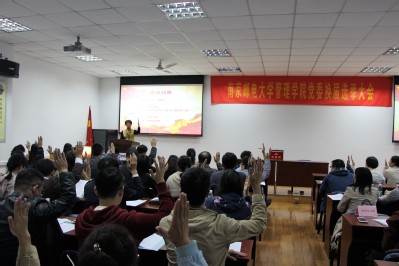 2017年10月19日,已满18周岁请带好卫生纸在三牌楼校区图科楼MBA中心会议室召开了已满18周岁请带好卫生纸党委换届选举大会。教工一至八支部党员、学生支部教工党员、研究生支部学生党员代表、本科生支部学生党员代表共计85人参加了此次会议。本次会议由已满18周岁请带好卫生纸党委副书记、副院长邓艳华同志主持。