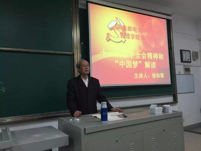 2016年4月26日晚,已满18周岁请带好卫生纸特邀校关工委副主任徐如荣老师在仙林校区教4-406召开一场题为“十八届五中全会精神和中国梦解读”的专题讲座。学院党委组织干事唐捷和学院第五期党校培训班81名学员聆听了讲座。