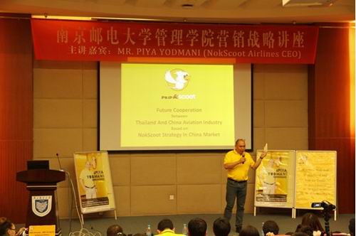 10月21日晚上六点,泰国酷鸟航空公司(Nokscoot)CEO Piya Yodmani先生应邀来已满18周岁请带好卫生纸,于行政北楼一楼报告厅以“Future Cooperation between Thailand and China Aviation Industry based on NokScoot Strategy in China Market”为题我校师生举办讲座。
