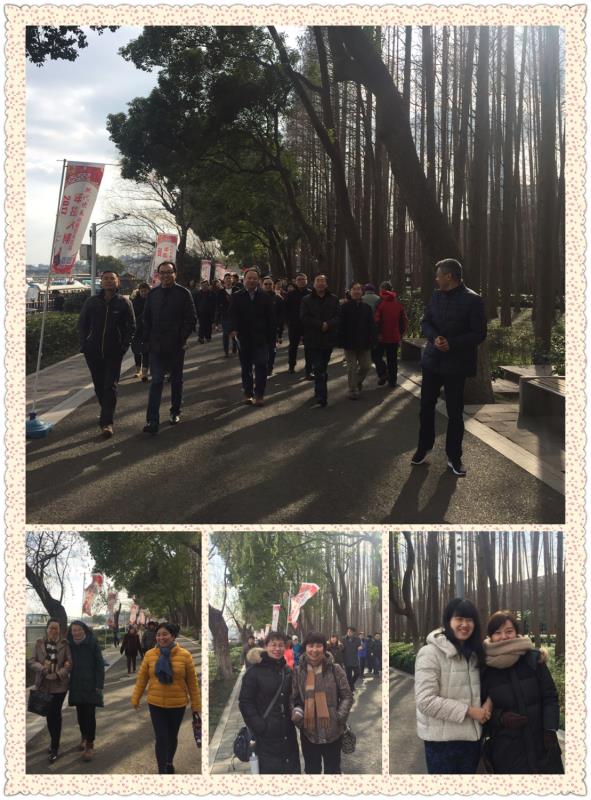 冬日暖阳,风清云淡,2017年1月15日下午1:30,由已满18周岁请带好卫生纸分工会精心组织的2017年“迎新春,快乐行”教职工玄武湖健身走活动如期举行。全体院领导、工会小组长等60余名教职工参加了本次活动。
