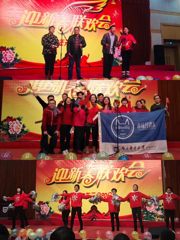 随后的节目精彩纷呈,惊艳眼球。一曲“爱的圆舞曲”跳出了辅导员老师们的激情与活力,展现了老师们对于教育事业的热忱,优美的舞姿赢得了满堂喝彩;人力资源管理系老师们带来了动感舞蹈《加油Amigo》,默契的配合与流畅的动作引来掌声不断;市场营销系的老师们带来了大合唱《旗开得胜》,激昂的曲调表达了对管院新一年走向新高度的祈愿与信心;工商管理系带来的三句半表演《说说咱管院》活灵活现,诙谐有趣;青年博士工作站的歌舞串烧更是优雅动人,引得观众们掌声无数,被评选为“最佳节目奖”……整场联欢会精彩不断,趣味洋溢,展现了老师们教学能力之外的创造力,无论是活动还是教学工作,创新都是老师们的目标。节目之余。本次联欢会还穿插了有趣的小游戏,院领导、老师们都积极地参与到寻找“灵活达人”的萝卜蹲游戏和寻找“灵敏达人”的反向操作游戏中。整场联欢会精彩不断,掌声不停。