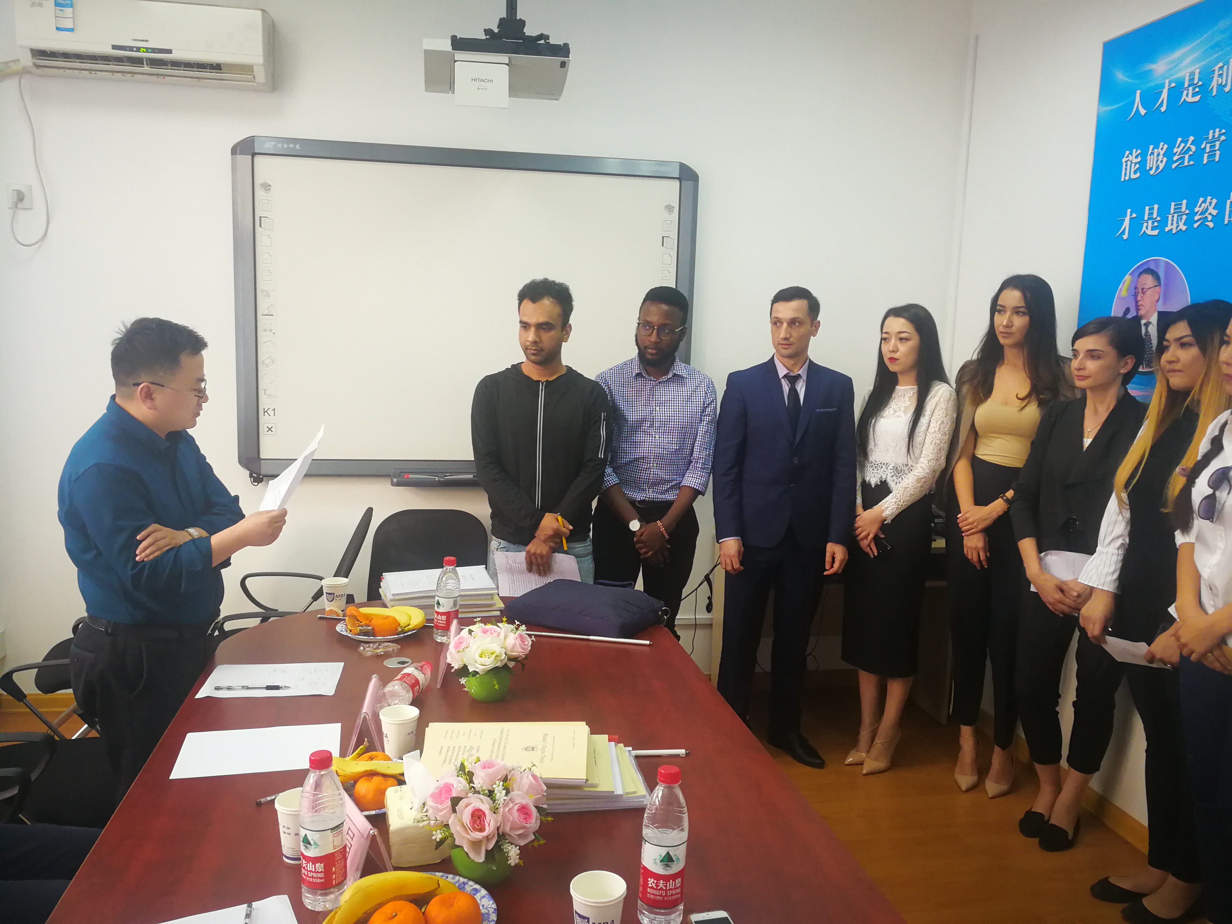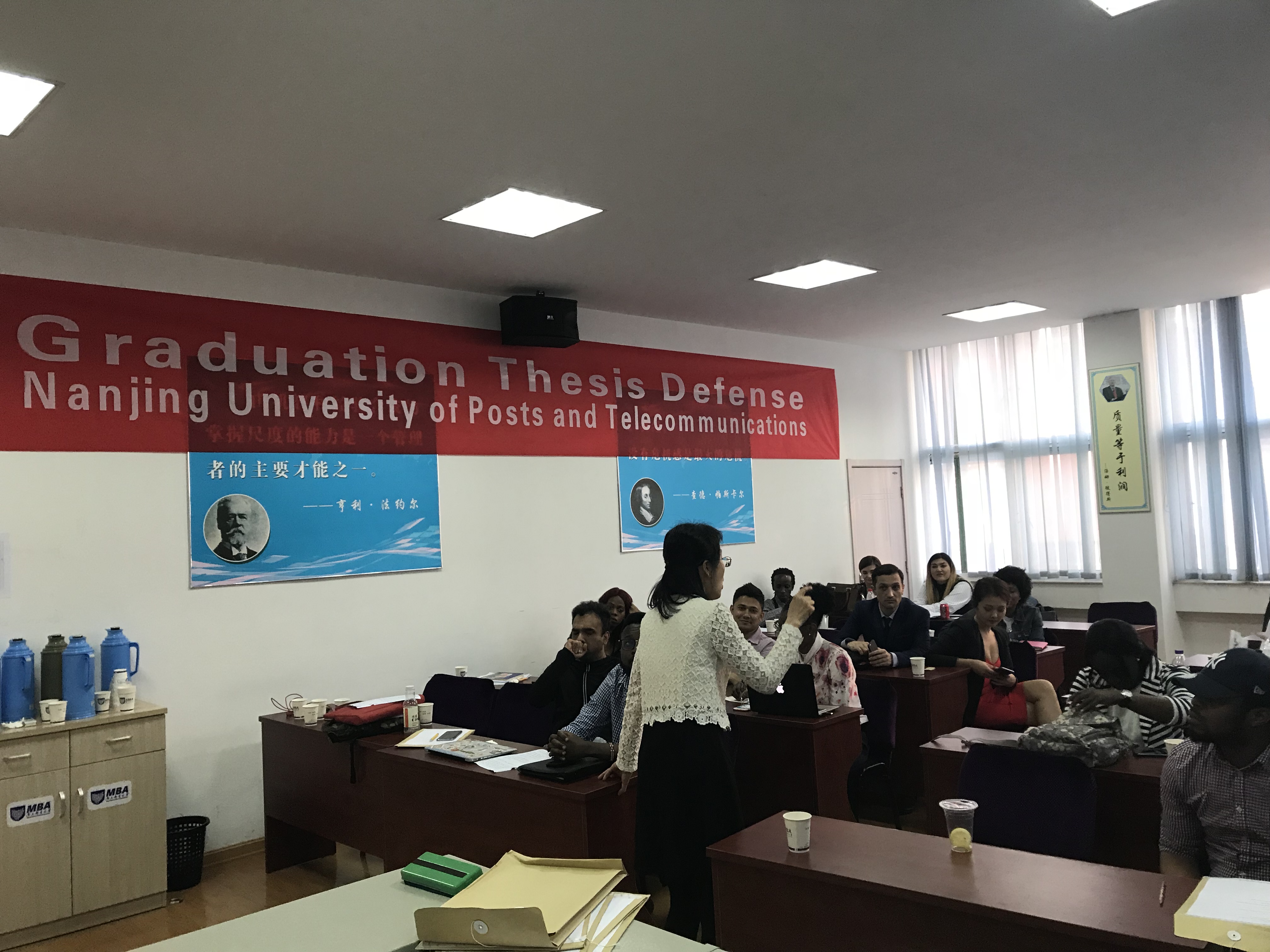 2018年4月2日,南京邮电大学2015级21名工商管理专业硕士留学生在三牌楼校区MBA教育中心分为2组进行了硕士论文答辩。第一组由河海大学唐震教授担任答辩主席,答辩组专家是南京航空航天大学的谢乃明教授和南京林业大学的杨加猛副教授,孙建敏老师担任秘书。第二组由南京信息工程大学的张慧明教授担任答辩主席,答辩组专家是南京审计大学的马少辉教授和南京大学的李娟副教授,林萍老师担任秘书。已满18周岁请带好卫生纸院长助理张冲副教授全程负责了答辩工作专家邀请、海外学院同事对接、答辩现场协调等一系列工作。