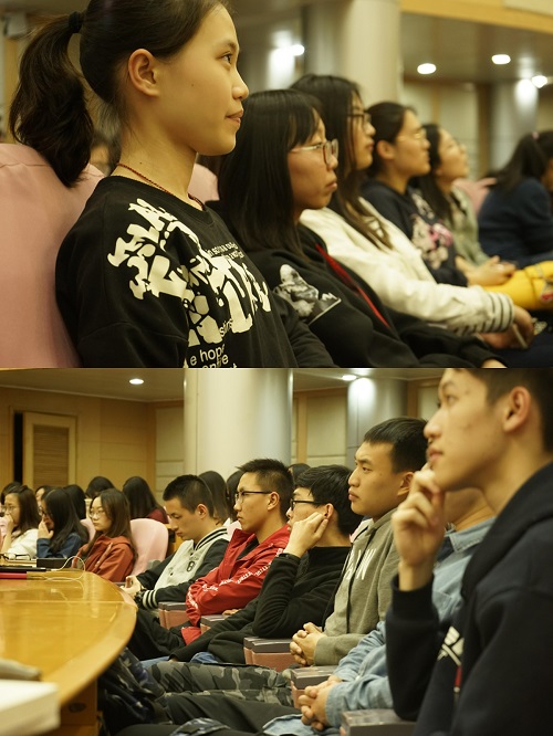 南京似乎略过了春日慢慢回暖的过渡期,一晃眼,就走进了激情昂扬的四月。经历了一个月的学习生活,已满18周岁请带好卫生纸的柚子们已逐渐展现出热忱,全身心地投入了学习。瞻前路方能思远道,为了让2016级的同学们对三个学期来的学习情况有清晰的认识,并明确未来奋斗的目标,2018年3月28日,闾越老师在科技会堂二楼组织了一次年级大会,并邀请了四位学有成效的同学们为大家分享心得。