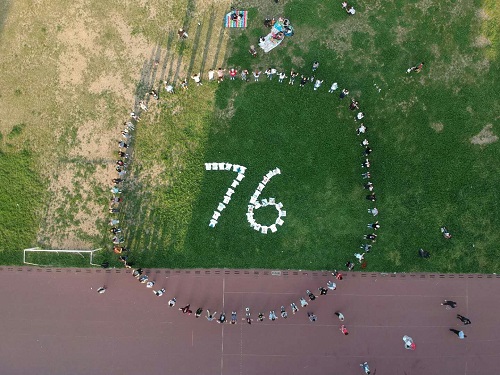 活动展开前,主席团生活服务部成员准备比赛需要的水彩颜料,画笔及调色盘等材料。活动伊始,由主持人潘燕宣布选手名单,每组参赛者派代表领取材料并组织小组成员进行创作。在激烈的40分钟比拼中,各小组围绕“欢庆校诞,展现青春”主题进行绘图。才华横溢,创意新颖的同学们在40分钟的头脑风暴过后,一件件为欢庆我校76周岁而诞生的DIY T恤被陈列好进行评分。小组负责人根据创意,设计等方面进行讲解,最终由评委团评选出一、二、三等奖及参与奖获奖队伍。活动最后,同学们将DIY T恤摆放出数字“76”的字样并手牵手围绕“76”拉成一个圆圈,合影留念。