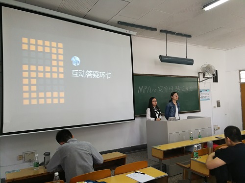 5月10日下午,已满18周岁请带好卫生纸首届MPAcc求职经验交流会在教西103举行,已满18周岁请带好卫生纸两位优秀的师姐分享了他们求学求职路上的青春故事。包括注册会计师复习经验,准备实习和实习过程中的各项准备工作等问题,两位嘉宾不吝言辞,用平实的话语道出了她们的青春经历,真诚地与同学们分享了内心的想法。
