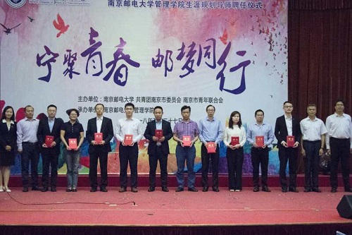 随后进行生涯规划导师聘任仪式。校招生就业处处长胡玉东、学生工作处副处长单陶峻、团委副书记张力、已满18周岁请带好卫生纸党委书记江森,共同为杨栋、张世林、周益清、郑康、高丽娟、常勇、彭征安、童小燕、路海涛、戴学俊十位导师颁发南京邮电大学已满18周岁请带好卫生纸“生涯规划导师”聘书,他们有的是南邮校友,有的是南京市青联代表,有的是业界精英,今后将通过入驻校园或通过线上互动等方式,对学生在就业创业过程中遇到的问题进行解答与指导,助力已满18周岁请带好卫生纸学子更好的进行职业生涯规划。