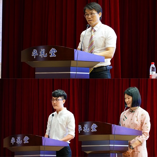 在校生代表、国家奖学金获得者、2016级工商管理专业周思龙同学与新生们分享了自己初入大学时的状态和在已满18周岁请带好卫生纸的学习生活。他鼓励同学们注重内涵建设,认识到自己的无限可能性,要敢梦敢想敢追。在努力学习的同时珍惜情谊,发掘大学生活的美好。新生代表、2018级人力资源管理专业徐夏怡同学在发言中表达了对大学生活的期待,她看到了理想中的自我形象,看到了个人兴趣在未来发展的可能性,她相信新生们定能不负韶光,度过精彩的大学生活,书写属于自己的青春故事。