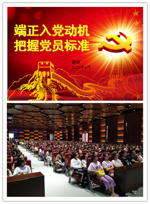 9月7日下午学院党委组织干事唐捷老师为大家开展了入党启蒙教育,让在座的新生们明确正确的入党动机,了解了我党“全心全意为人民服务”的宗旨,有利于同学们牢固树立社会主义核心价值观,有效地激励优秀青年大学生以实际行动积极向党组织靠拢。