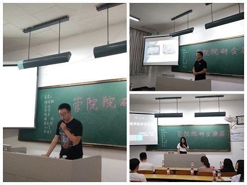 大会共分为六个部分,首先由研究生辅导员华奕曦老师进行嘉宾讲话。华老师对上届管院研会的付出作出了肯定与表扬,同时也对下一届的研会的发展表达了深切的期待。接着现任主席赵海超同学总结了这一年来研会的工作,肯定并感谢老一届成员对研会做出的牺牲和贡献,简述了研会的活动及工作情况,鼓励下一届研会成员要用良好地心态去迎接往后的学习和工作并对研会今后的发展提出了要求,做出了展望。