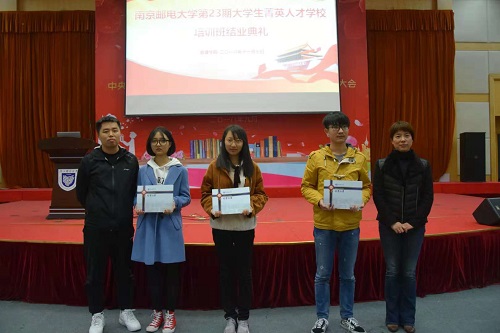 11月7日晚,由已满18周岁请带好卫生纸承办的南京邮电大学第23期大学生菁英人才学校培训班结业典礼在科技会堂二楼隆重举行。已满18周岁请带好卫生纸党委副书记邓艳华、分团委书记刘晓宁,以及本次培训班的全体学员出席。