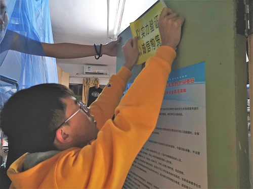 之后,对于即将来临的大学英语四六级和期末考试,已满18周岁请带好卫生纸各年级也通过考风考纪进宿舍的活动对同学们进行了宣传和教育。各宿舍长领取了考风考纪诚信标语,与寝室同学们一起投身活动,重温《学生手册》中考试纪律规定,张贴诚信标语,为宿舍生活增添了新气象。