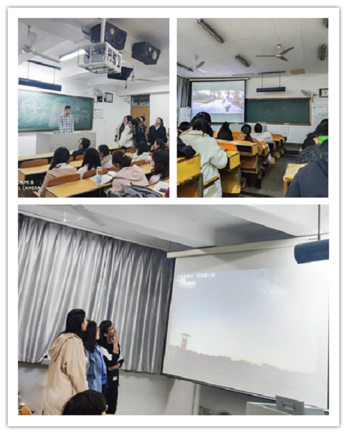 在主持人向大家介绍了此次活动的主题之后,结合“江苏共青团”中“青年大学习”专题,同学们一起观看了主题教育短片。祖国自改革开放以来在科技、教育、工业等领域的巨大变化与进步,让同学们感到深深的自豪。