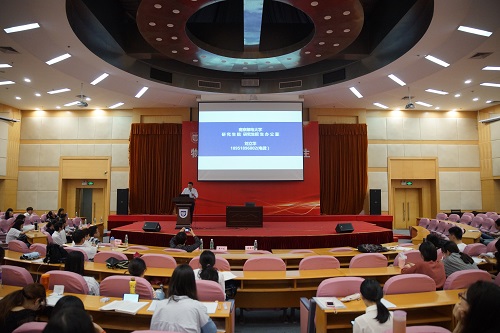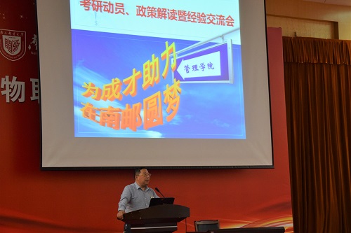 随后,研究院招办副主任刘立华老师向大家清晰解读研究生招生政策和南邮硕士研究生招生情况,用一系列数据分析了近年来研究生招生、录取人数的对比,鼓励同学们只要坚持到底,充分利用好母校“双一流”高校的优势资源,报考本校研究生。同时,刘主任还向大家进行了2020年考研新政的分析,强调了在报考和调剂过程中的注意事项,进一步提出考研备战过程中心态和方法的重要性。