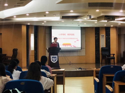 首先,邓艳华副书记对同学们顺利完成学业表示祝贺,就毕业生文明离校工作提出三点要求——率先垂范,善始善终;严于律己,文明离校;饮水思源,心系母校。她以一位毕业21载的过来人的身份,回忆自己美好的大学生涯,并寄语毕业生同学们传承“信达天下,自强不息”南邮精神,不忘初心,鼓励毕业生在未来的人生舞台上开拓创新,砥砺前行,最后以一副对联——“情寄鸿鹄万般努力彰精彩,乘风破浪一路传承续辉煌”,为2019届毕业生送上美好的祝愿。