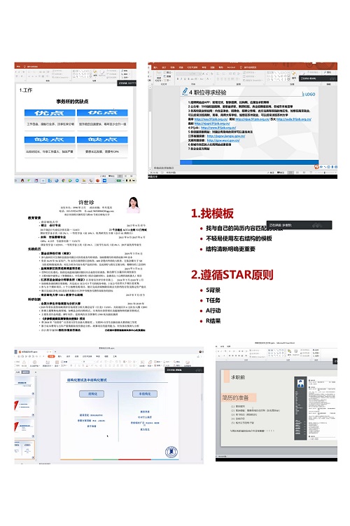 随后,五位学长学姐一一进行了经验分享。首先,许世珍学姐为我们纠正了一直以来就业与学习的误区,她认为通过CPA不应该是毕业、工作的唯一出路,切忌将时间大量花在CPA考试上,而错过秋招。学姐还为我们介绍了个人简历的书写、模板、修改等问题,最后,许世珍学姐希望大家在找工作的过程中保持良好的心态,建议大家一定要有信心,积极向前。接下来,胡智瀚学长重点为我们讲述了如何应对国企面试。针对国企面试的三种主要类型:结构化、半结构化与无领导面试,胡学长为我们一一介绍,并对可能出现的问题提出了针对性建议,比如:事先准备各种问题;回答问题突出重点、条理清晰;注重日常积累,扩大知识面等。