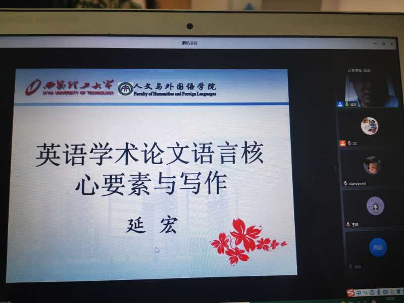 为提高已满18周岁请带好卫生纸高水平科研论文的数量和质量,2020年6月4日下午,我院通过腾讯会议的方式邀请全国知名科技英语专家延宏副教授做了题为“国际重要期刊英语学术论文语言核心要素与写作要旨”的讲座。会议由院长助理张冲副教授主持,学院部分教师和研究生参加了会议。