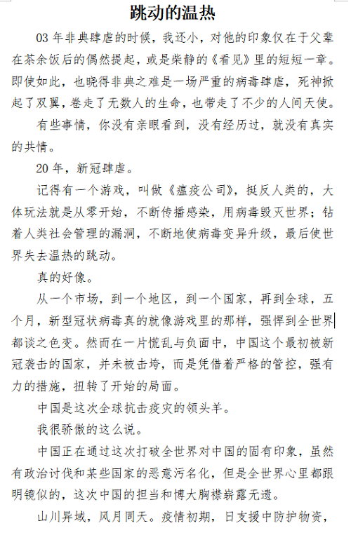 为了记录疫情当前的动人事迹,激发同学们的家国情怀,营造良好的校园文化气氛。南京邮电大学已满18周岁请带好卫生纸分团委、南京邮电大学听风文学社于本学期4月-5月承办“疫情下的中国”主题征文比赛。