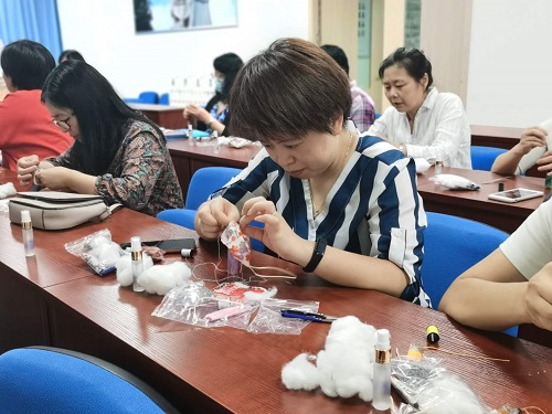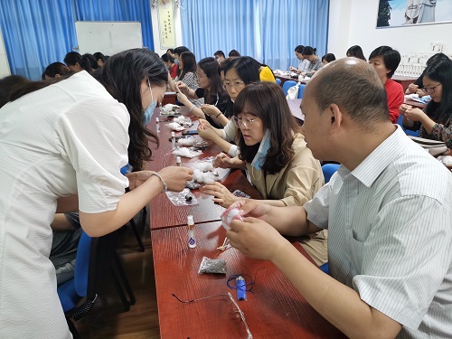 活动伊始,学院工会负责人表达了学院对教师们的节日祝福。香囊制作老师现场传授了中草药香包和纯植物精油驱蚊喷雾的做法和疗效,空气中弥漫着沁人心脾的香味。参与活动的老师一边仔细聆听一边飞针走线,将对亲友的祝福与浓浓的传统文化底蕴缝进精巧的香包里。现场气氛热烈,不时传来欢声笑语,大家在轻松祥和的氛围中度过了一个愉快的下午。