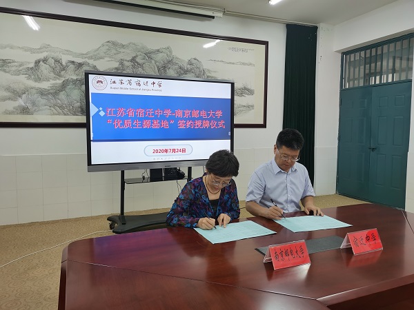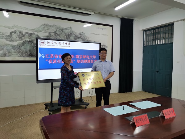 朱清书记向宿迁中学授“南京邮电大学优质生源基地”牌匾,双方签署了“南京邮电大学优质生源基地建设协议书”。