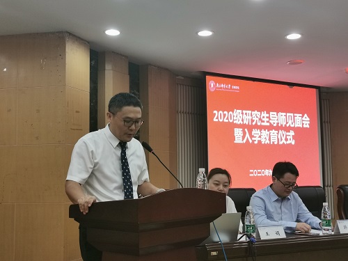 此次见面会主要目的是为了加强学生对导师的了解,我校十佳研究生导师刘宁教授作为导师代表为新生送上了寄语与希望。刘宁教授希冀大家:一是树立正确的科研价值观,恪守学术道德,不浮躁;二要视野开阔,打破局限,不做井底之蛙,充分利用高校资源,培养开阔的研究视野,提升研究能力;三应关心实践,做有意义的研究,时刻牢记“厚德弘毅,求是笃行”的校训,砥砺奋斗、刻苦钻研。