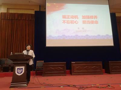 随后,朱清书记为同学们主讲党课《端正动机 加强修养 不忘初心 担当使命》。朱清书记首先围绕入党动机的含义,强调了端正入党动机的重要性,提出了端正入党动机的基本要求和主要途径。紧接着,朱清书记结合以钟南山为代表的优秀中共党员,在疫情防控斗争中的生动事迹,诠释了初心和使命的真正含义,并激励同学们提升自我修养,勇担时代使命,早日成为时代栋梁。最后,她以毛泽东同志的名言“做一个高尚的人,一个有道德的人,一个纯粹的人,一个脱离了低级趣味的人,一个有益于人民的人”作为结束语,与学员们共勉。