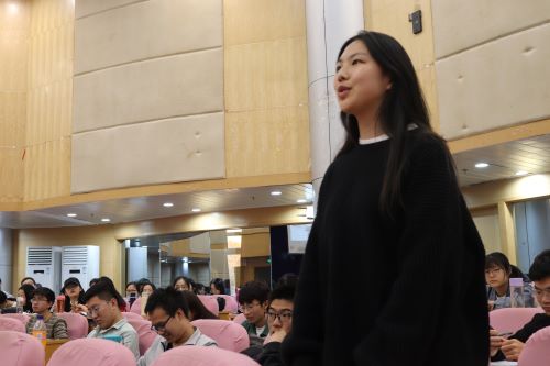 会议伊始,李一鸣老师针对菁英人才培训班进行了简单的讲话,并对未来做出了展望。紧接着,闾越老师以提问的方式正式开始了讲座,和同学们讨论关于未来就业及未来生活的想法,并向大家阐述了目前紧张严峻的就业形势和逐年增长的就业压力。在此基础上,闾越老师结合实际数据,为同学们介绍了已满18周岁请带好卫生纸历年来的出国升学率,借此激励同学们努力学习,尽早做好较为全面的人生规划。