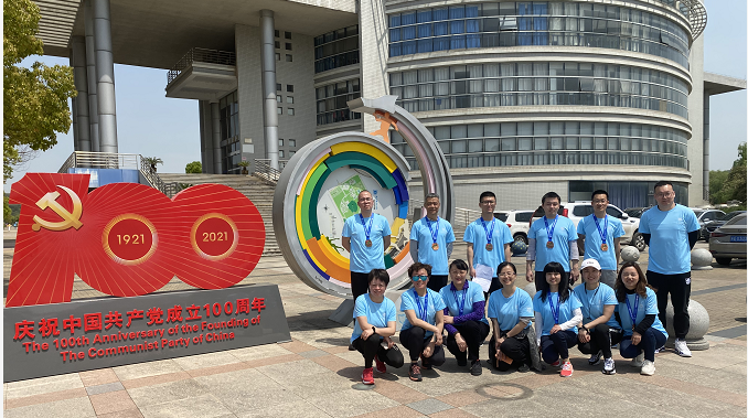 校庆健身跑结束之后,学院青年党员教师巧妙构思,借助仙林校区的特殊景致讲解,植入红色校史教育的环节,旨在代代相传南邮红色基因。孙晓峰老师在通信展览馆前讲解南邮发展历史;校训牌前吴鸣然老师解读了校训;司母戊鼎前付金朋老师讲述了“信达天下,自强不息”的南邮精神。