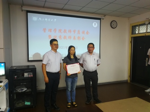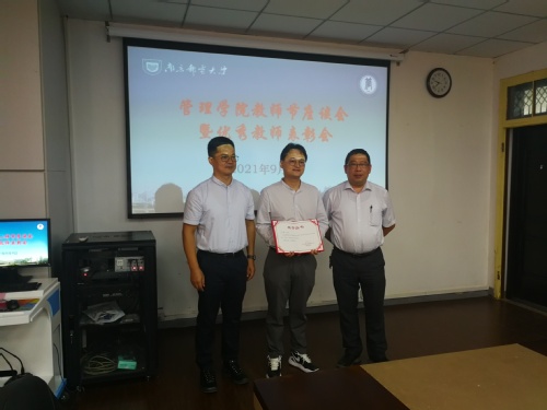 会议在庄严的国歌声中拉开帷幕。学院党委钟凯书记宣读了优秀班主任名单,陶卓、朱京辉、白云朴、刘宁、侯萍、王桦等6名班主任获评学院2020-2021学年度优秀班主任,钟凯书记与黄卫东院长共同为优秀班主任颁发了荣誉证书。优秀班主任代表刘宁老师在发言中指出,作为班主任,要在“三观”教育、学业指导、发展方向上为学生做好指引。学生代表巩海旭在发言中回顾了大学老师的言传身教和无私关怀,向辛勤耕耘的老师表达了节日祝福和衷心感谢。新入职教师代表安静在发言中感谢了学院的温暖氛围,梳理了学院教师近期取得的各项成就, 并表示将不断学习新的专业知识和技能,提升自身教育教学、科研水平和师德素养,以最好的姿态迎接新的挑战,为学院发展贡献力量。